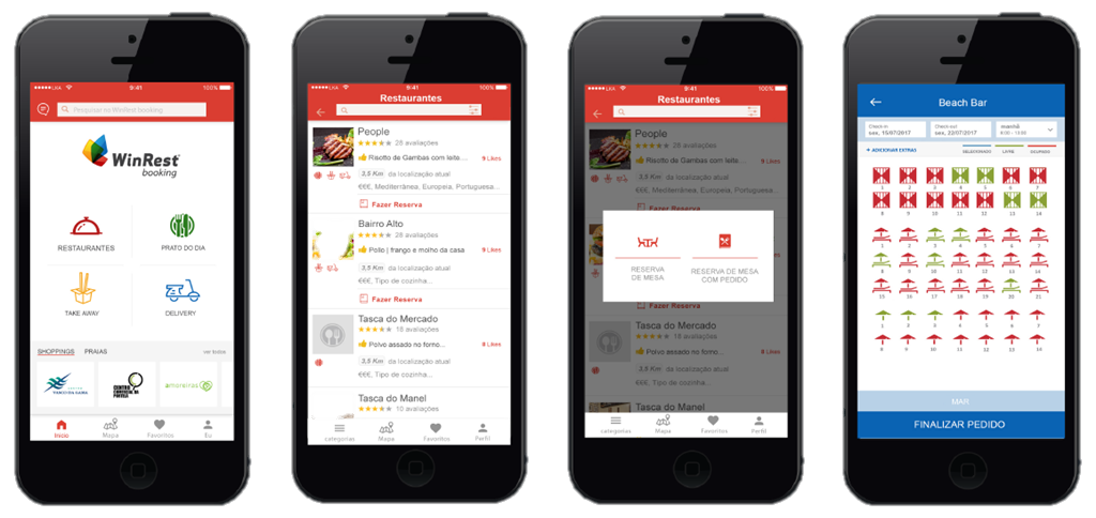 WinRest Booking é uma app inovadora, que integra com todos os produtos da linha WinRest e linha PRIMUM. Melhora a experiência do utilizador na escolha e reserva da sua refeição e de sombras na praia.